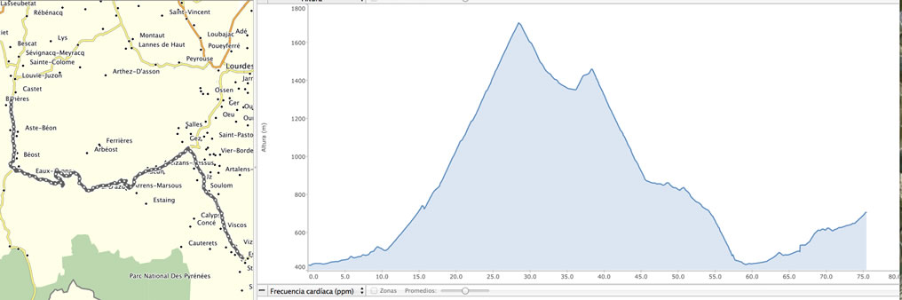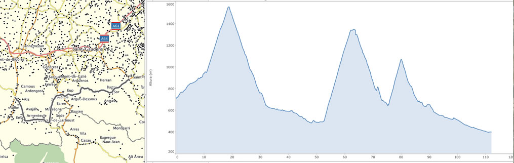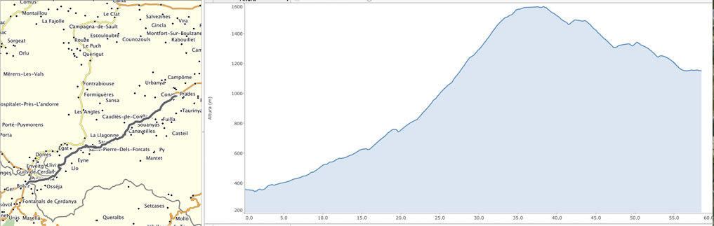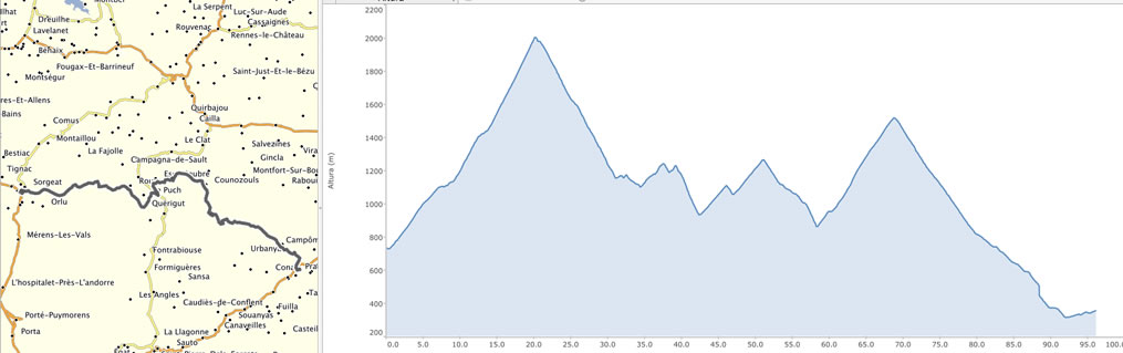 Esta travesía la realizamos Isa y yo por el lado francés de los pirineos en el mes de julio del 2012, fueron 8 etapas transitando por puertos míticos. Desgraciadamente al llegar a Prades nos vimos obligados a modificar la ruta debido a los incendios ocurridos por la zona de la Jonquera y Port Bou, por lo que el final fué en Puig Cerdá