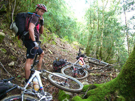 Salimos de Cucugnan por pista con poco desnivel, en Duilhac sus Peyrepertuse tomamos un tramo de carretera, que mas tarde se torna en pista, luego sendero hasta el Pla de Brezou donde perdemos las marcas del sendero y continuamos por una pista en dirección a Moulin de Coubieres, donde llegamos por un precioso sendero de bajada empinada y sinuosa, por carretera llegamos a Cubieres sur Cinoble desde donde seguimos por pista hasta la Bastide, luego un tramo de empujar la bici escalando y una bajada por el GR36 hasta la carretera que nos lleva al pueblo de Caudies de Fenouilledes. Alojamiento en el hotel Motor stop helder, sencillo sus dueños muy amables y peculiares, holandeses moteros de los de antes.