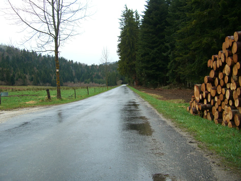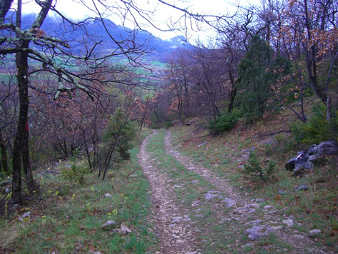 Continua lloviendo y pasamos por un tramo con barro, en Puibert dejamos un tramo del sendero para continuar por carretera hasta L'Escale, donde lo retomamos hasta Espezel, la temperatura es próxima a los cero grados y las montañas cercanas están nevadas. Nos alojamos en el hotel Grau, correcto y buena cena.